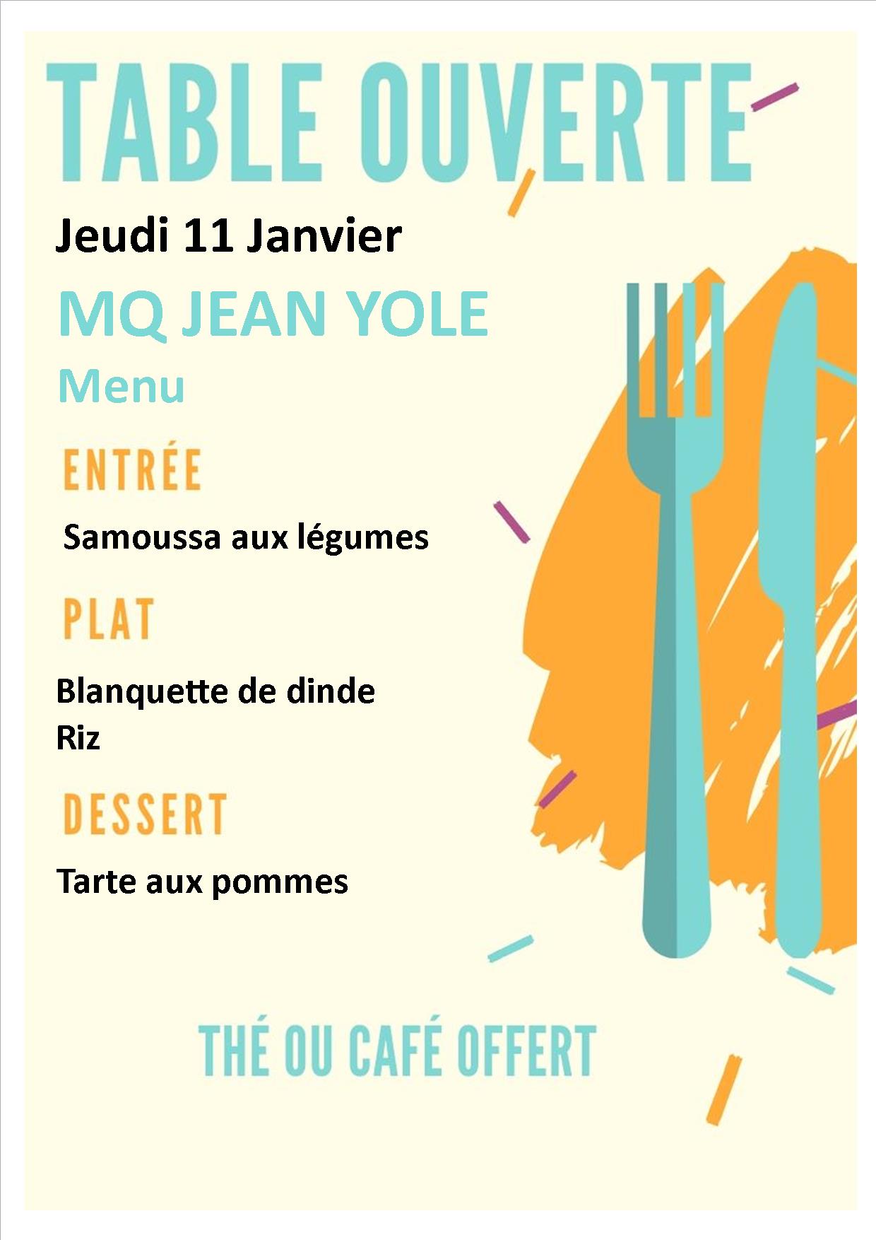 MENU DU 11 janvier