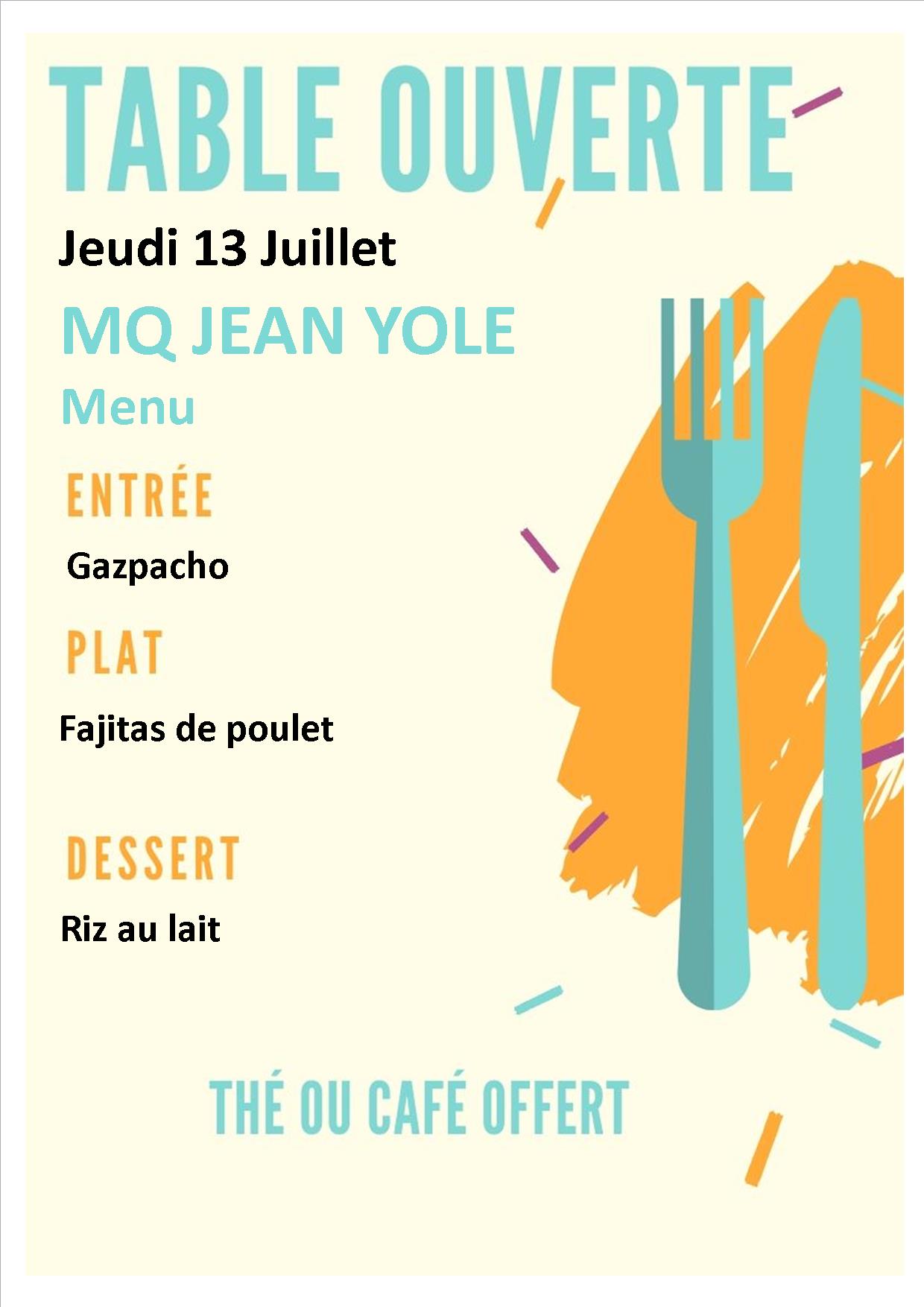 MENU DU 13 juillet