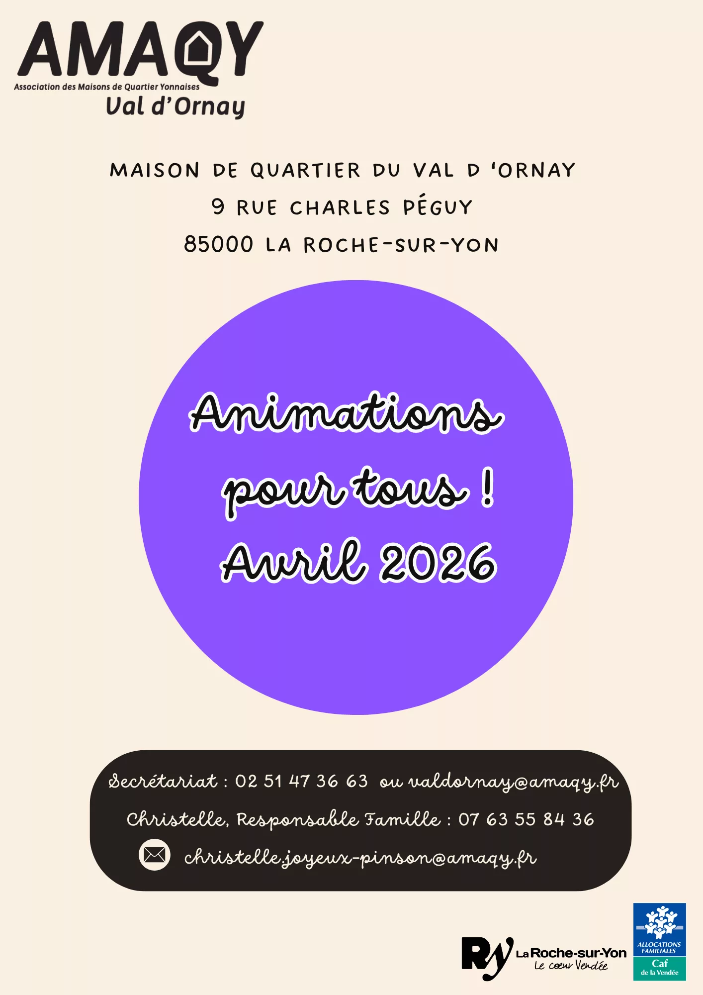 9, rue Charles Péguy La Roche-sur-Yon Tél : 02 51 47 36 63 Email : valdornay@amaqy.fr